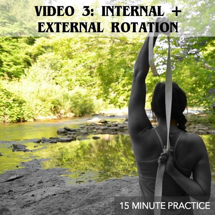 Video 3: Internal + External Rotation - A 15 minute practice focusing completely on internal and external rotation. We’ll move through several movements that will gently encourage the intricate muscles of the shoulders to move with more ease through their natural range of motion.
